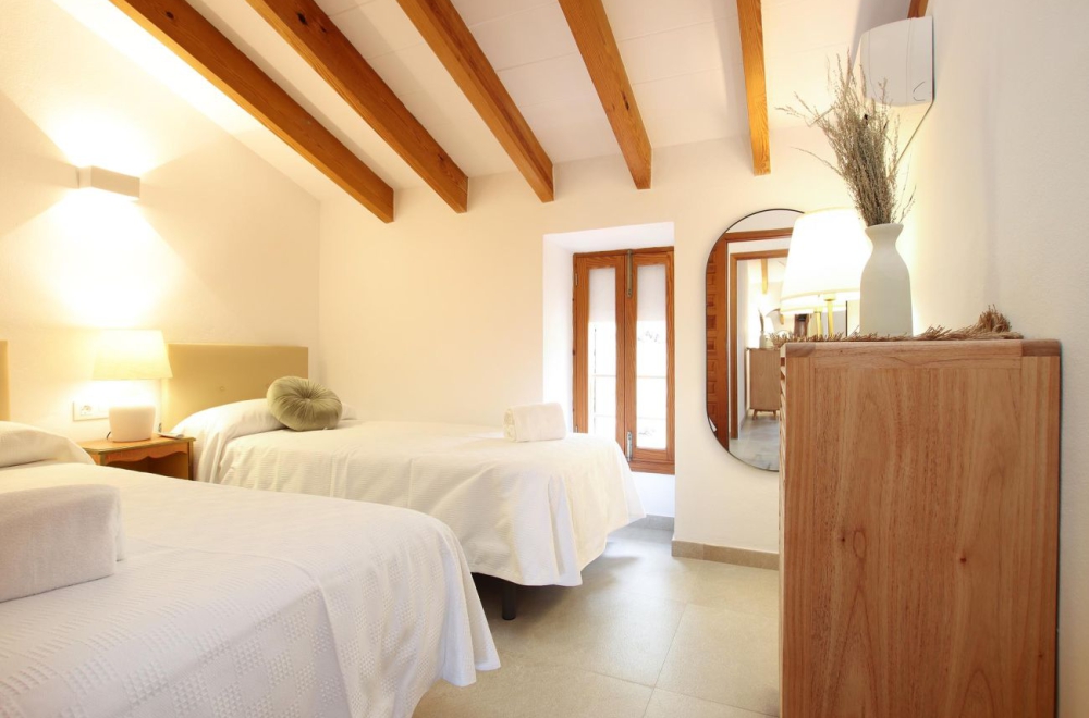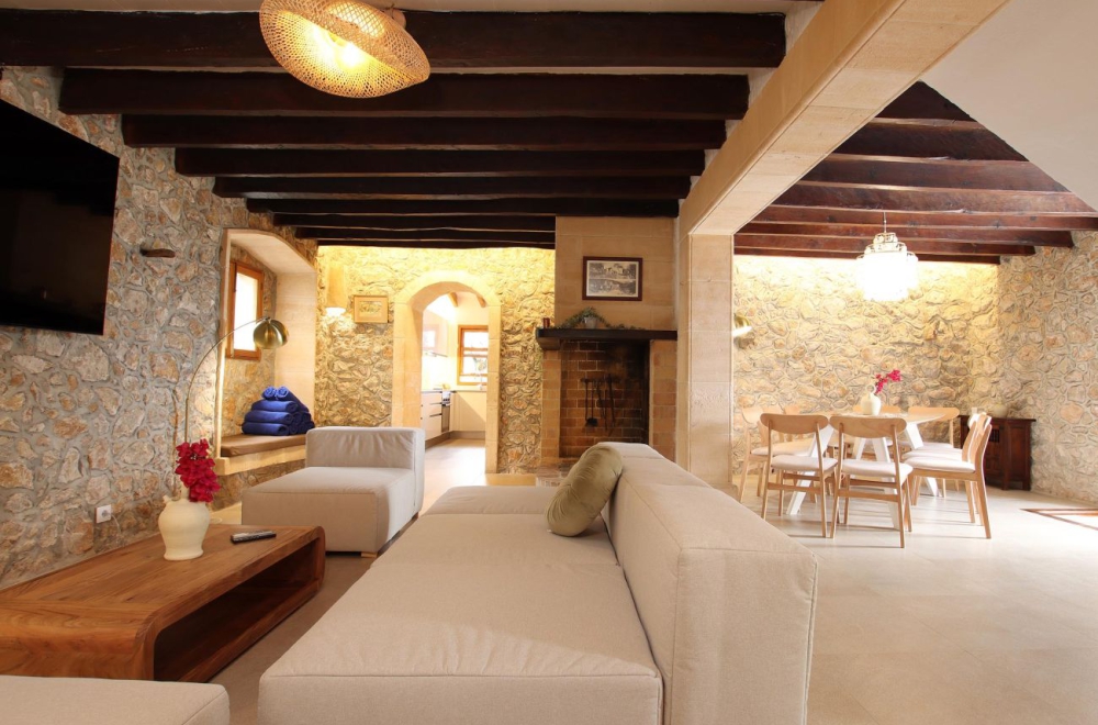 Eingebettet in die malerische Hügellandschaft, wenige Fahrminuten entfernt vom charmanten Dorf Pollensa, liegt die traumhafte Villa Can Alordes. Du erreichst Can Alordes über eine von Bäumen gesäumte Allee, die anmutig zur Villa hin ansteigt und Dir von dort die Aussicht auf den Puig de Maria freigibt. Selbst von der unteren Ebene des Hauses und dem wunderschönen Poolbereich aus bieten sich Dir weitreichende Ausblicke. Beim Eintreten durch die massiven Steinmauern der Villa empfängt Dich eine Oase zeitgenössischer Raffinesse, die sich harmonisch in den traditionellen Charme der umliegenden Oliven- und Mandelhaine einfügt.